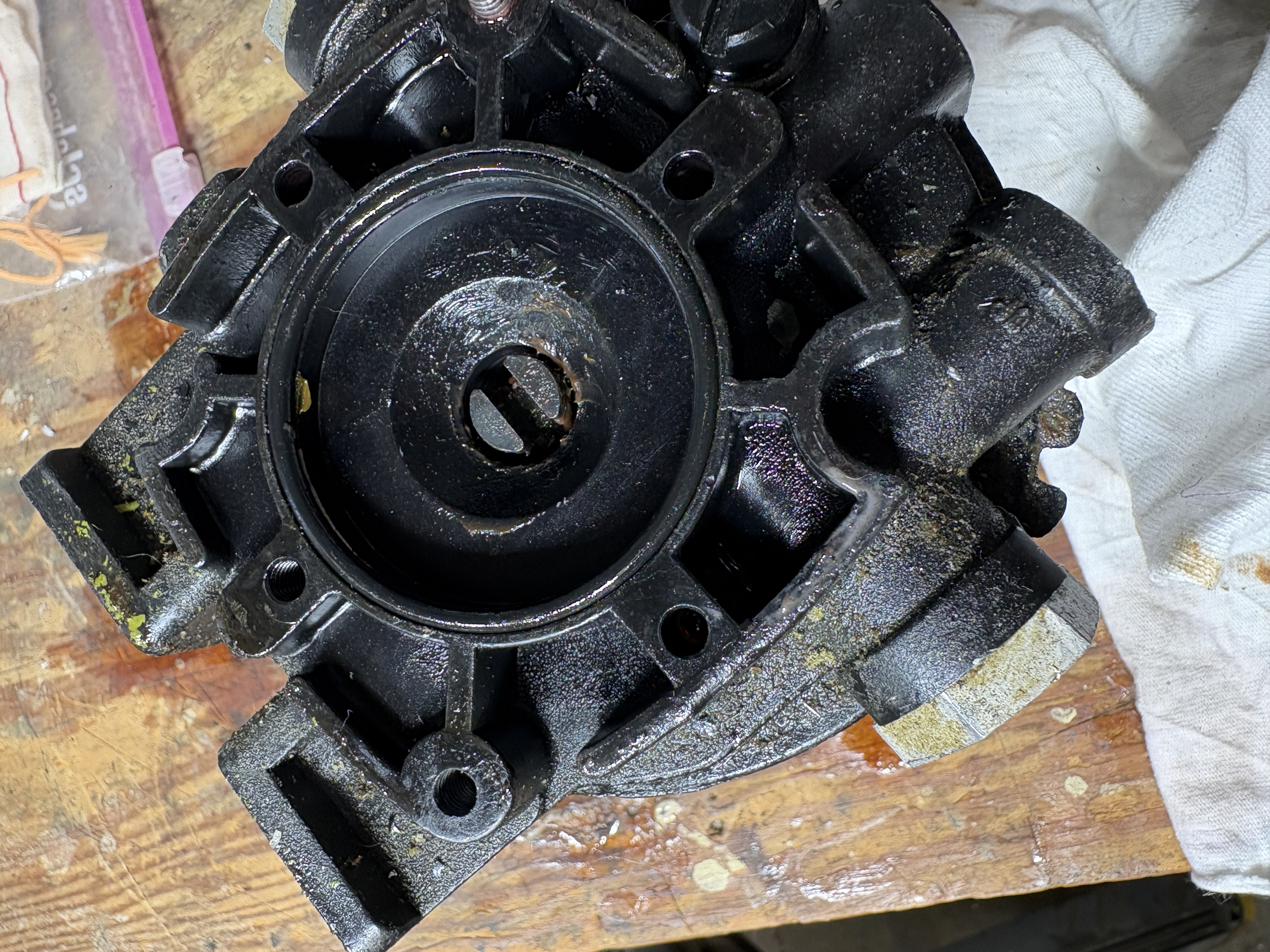 Yours is one of the earliest pumps. Those motors of that vintage have been failing from either worn bearings or shorted windings. The casting for the adapter did not yet have the tabs for top mounted reservoirs. It will also not have the LB back pressure relief circuit.