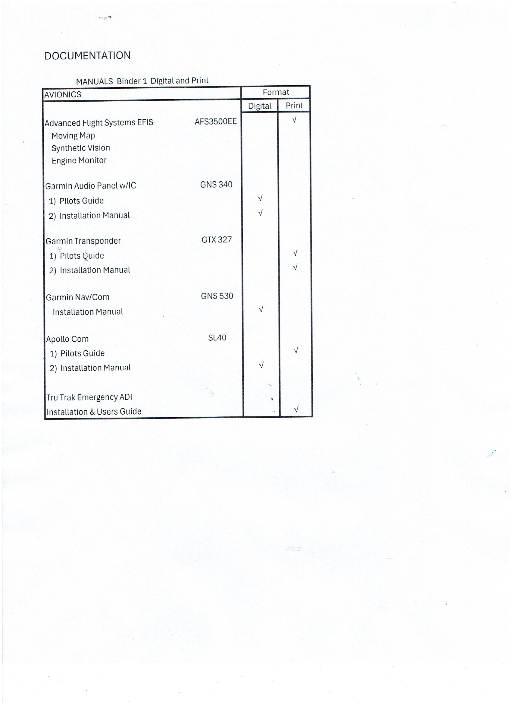 To summarize N52LC is N-reg in Denver area. Lancair 320 with Lyc IO360 by A/C Cylinders & Engines, Greeley CO,200HP, Superior Cold Air Induction, Extended fuel 53g, Wolfe remote oil filter, Advanced Flight Systems AF-3400 with EIS, SteinAir harness and FastStack hub, Vertical Power VP-X Pro Electronic Circuit Breaker System, AFS TruTrak A/P, Garmin 530, SL 40 Com2, GTX 327, uAvionix ADS-B, Risse Racing Shocks, LED landing lights. Dual rudder/brakes, high compression, Reichle pitch trim system, Jacks, tail stand, battery maintainer, spare new tires/tubes, heated pitot, Spare extra wheels and axle. Paint and maintenance by Jeff Michaels Jetstream Composites Watkins CO. Annual condition May 2025. New tires, tubes, all compressions 76/80. ELT battery next 2027. GTOW 1785, max landing weight 1685. TT 503 May 1, 2025. Training and insurance assistance available so call to get started.