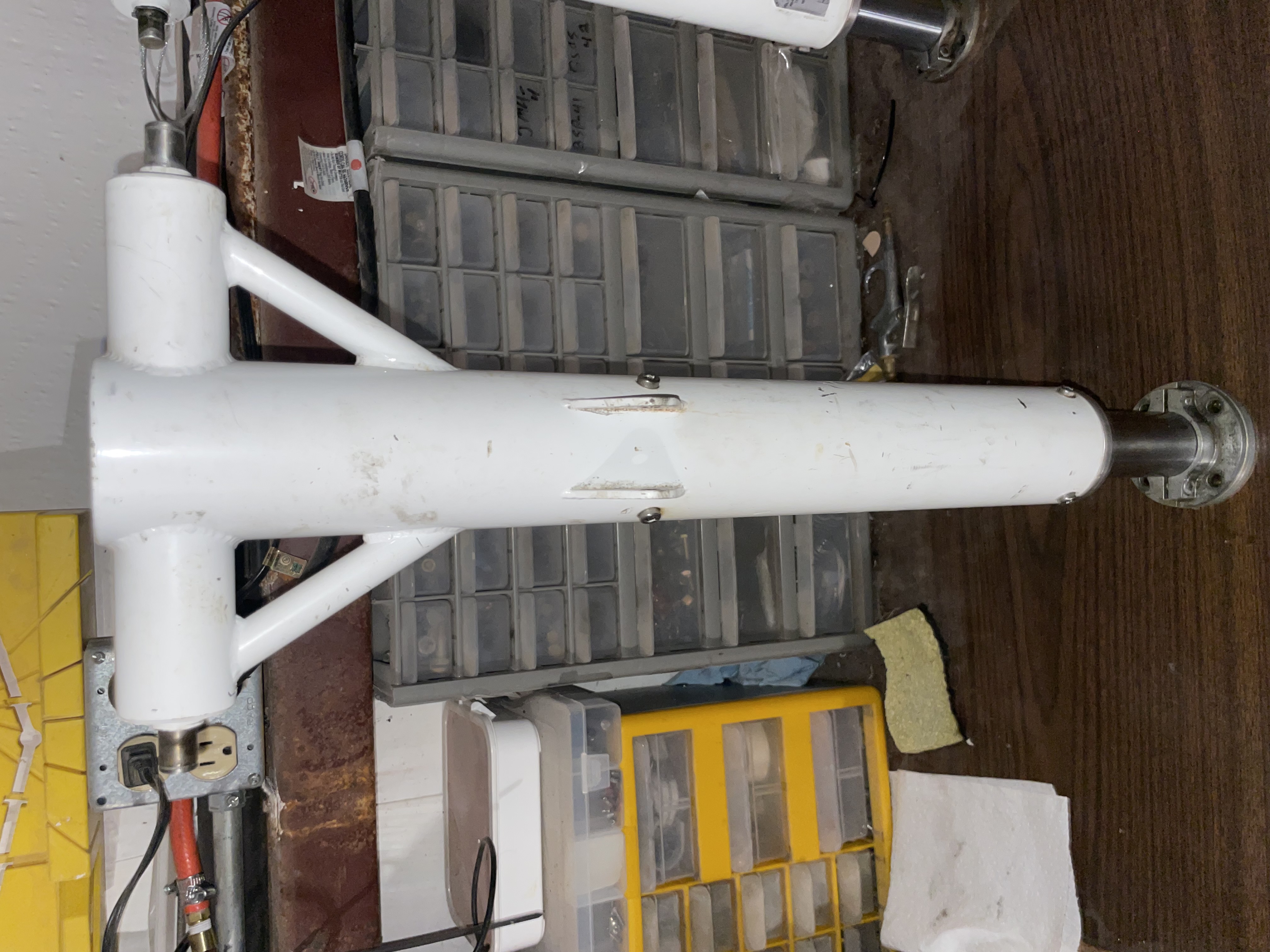When I got the ES this strut was on, When I landed in California after flying it from Atlanta, I noticed the nose wheel strut had a side bolt come loose and had kinda torn the nose wheel cover apart a bit. I did some fiberglass work to put it back together but I missed something. Specifically the top two screw holes had elongated a bit and it allowed a bit of play in the nosewheel cover. This caused a shimmy. I didn't realize this at the time though. I called Lancair and they kindly sold me a "new" strut. They said it was old stock. It didn't fix the shimmy so after research I realized the nose wheel cover was likely the problem. I just removed it.