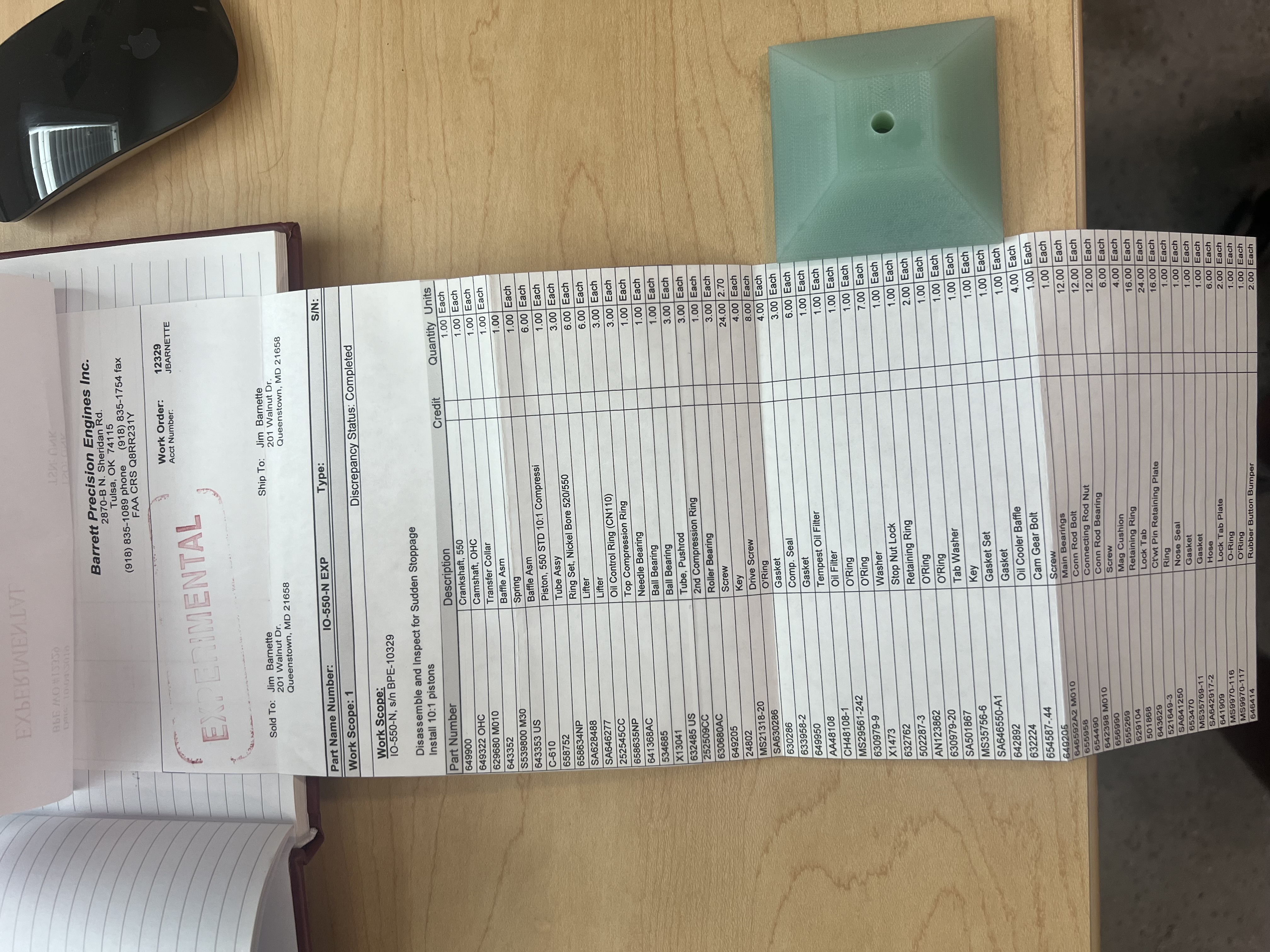 Long story as short as possible. The aircraft was landed in a corn field in 2018, someone bought it and put the airframe back together and sent the motor back to Barret for an IRAN. The documentation is attached, they went through it in high detail including a new crank shaft. The motor flat out rips. In my legacy I was seeing 230 knots true but the airplane is down for many upgrades and this motor won't be needed anymore. I don't need a core so you get the entire motor. It's currently located in Missouri but we have a crate to ship it in if needed.