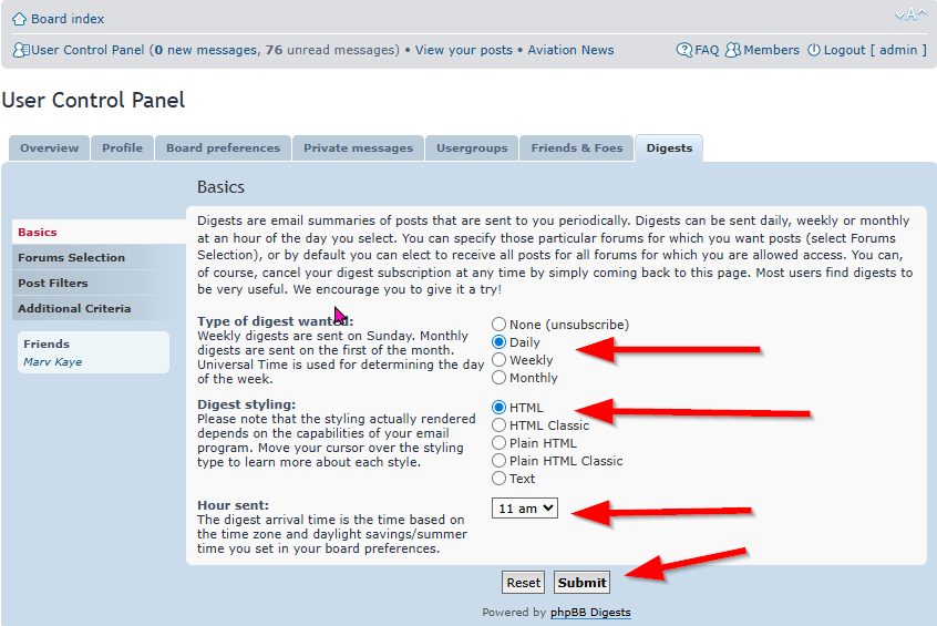 -You can turn it back on yourself by going to the CONTROL PANEL and DIGESTS and selecting the frequency and delivery type and hour (your local timezone).