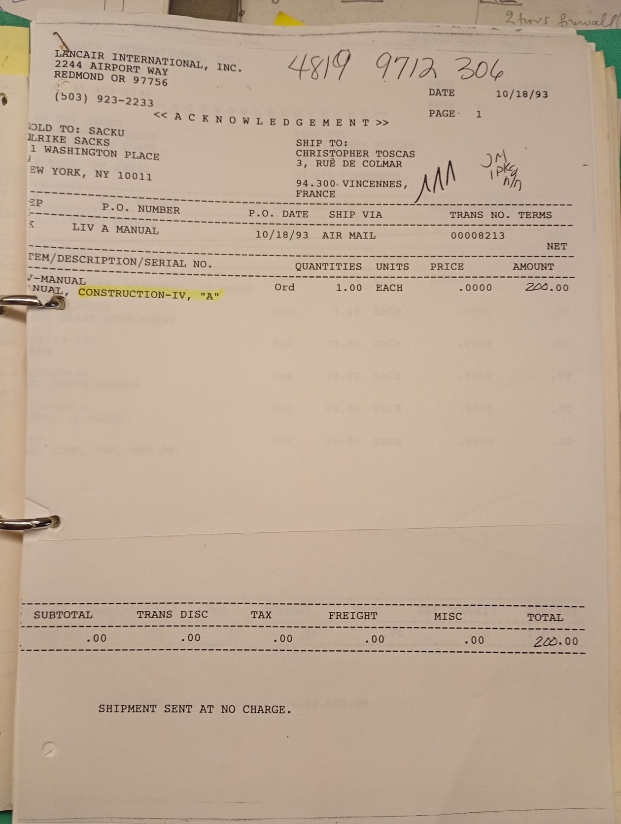 I bought my manual $200 in year 93, for the five text wording grey binders only.