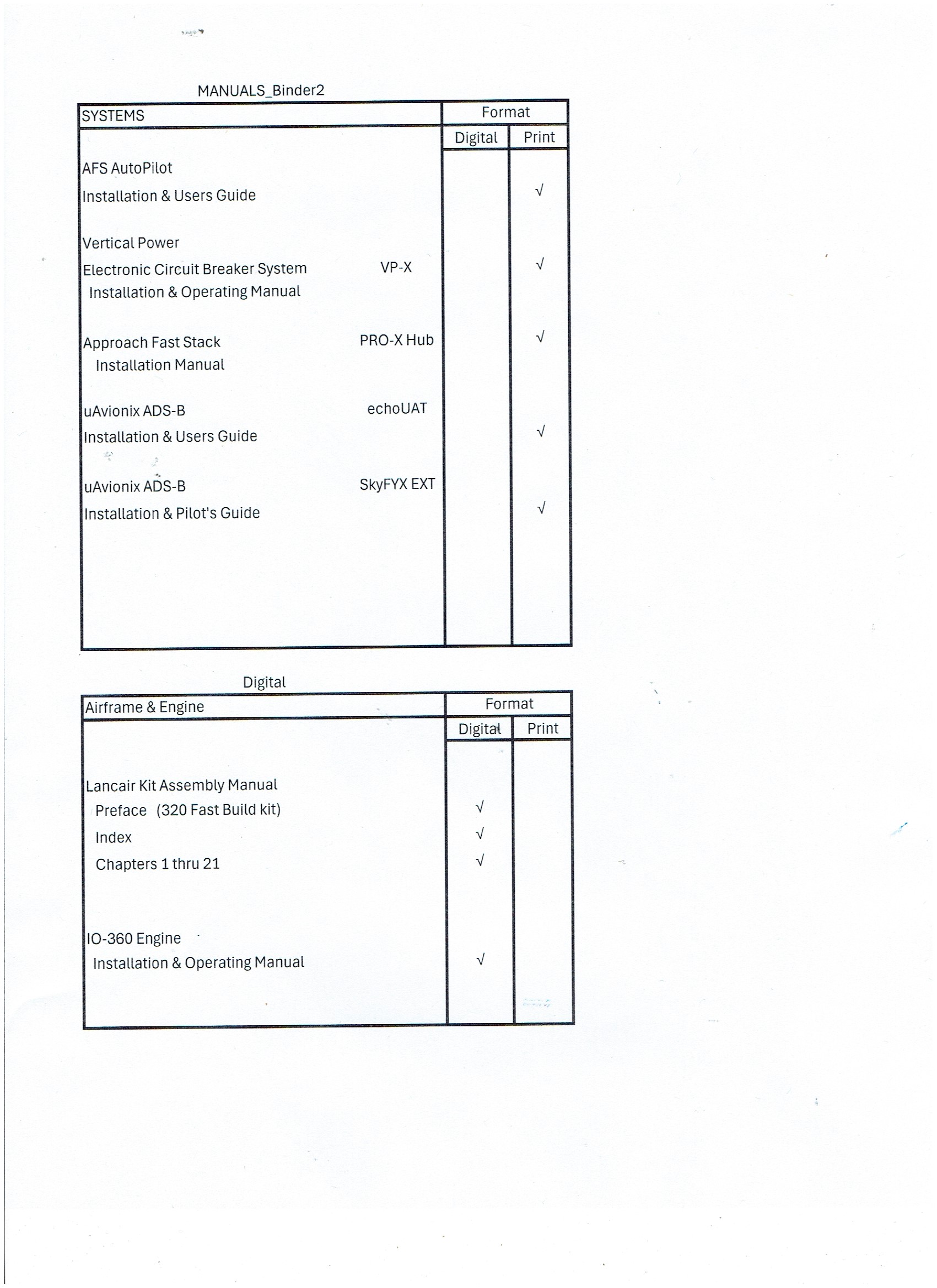 Here are some of the manuals included with N52LC 320/360